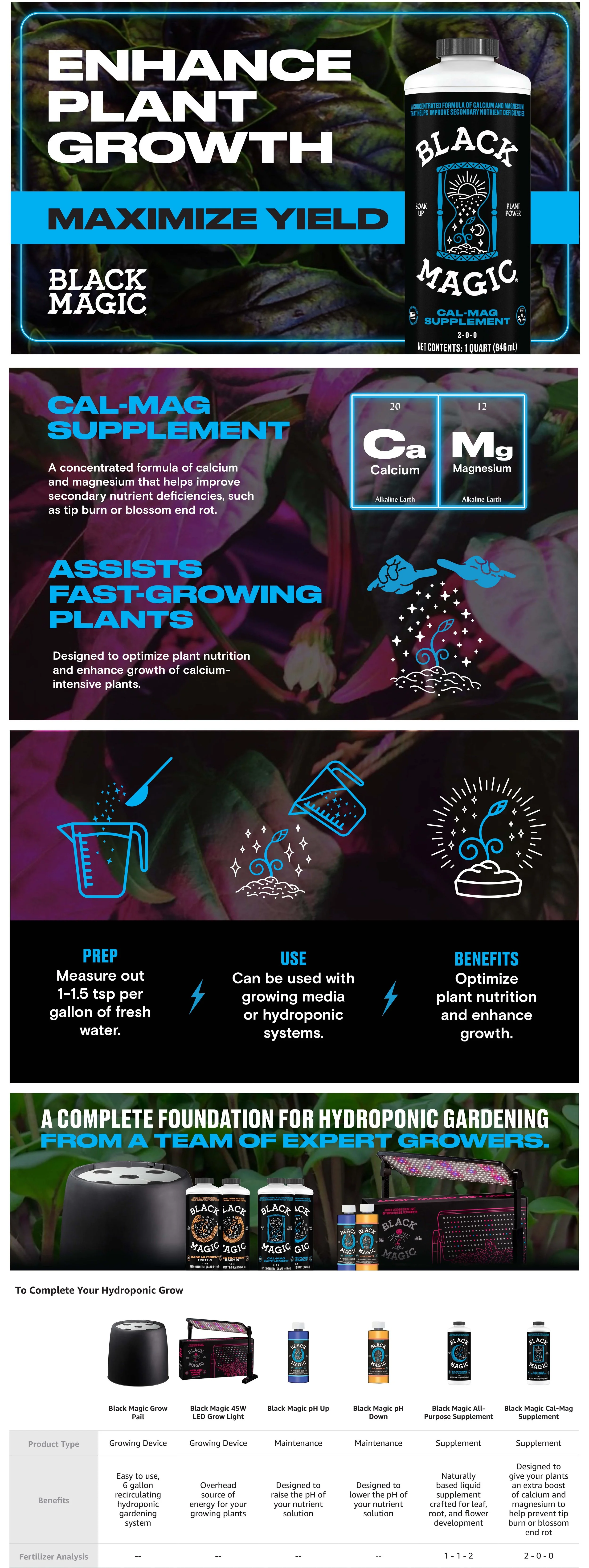 I was given the task of conceptualizing an Amazon digital storefront for Black Magic®, a brand that was recently acquired by Miracle-Gro®. Black Magic specializes in providing indoor hydroponic grow kits and essential growth supplements, with their Cal-Mag supplement being a crucial product in their lineup.